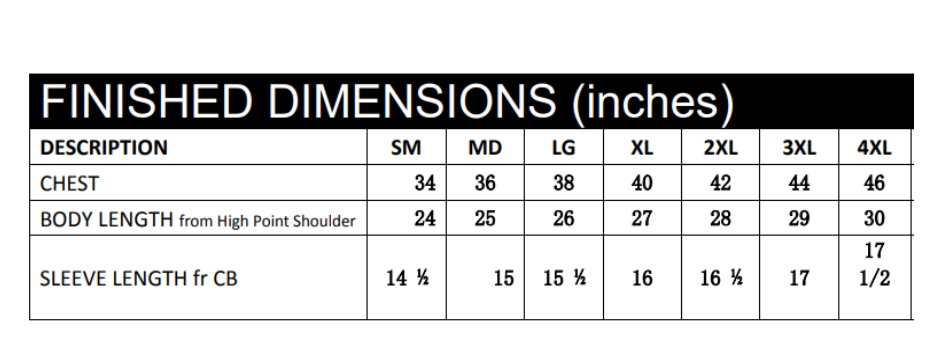 S-4XL (upcharges apply for 2XL-4XL)