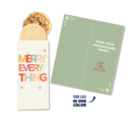 A Sweeter Card is a fully customizable greeting card and gourmet treat in one. Perfect for employee appreciation, onboarding, trade show giveaways (add company info and a QR code!), holidays, anniversaries, rebranding, events, and more! Choose from our library of premade designs and we’ll add your logo and text and adjust colors, or create your own using a blank template. Sweeter Cards offer endless creative possibilities with a delicious treat: our famous sugar cookies, lightly sprinkled with sugar for just the right amount of sweetness.